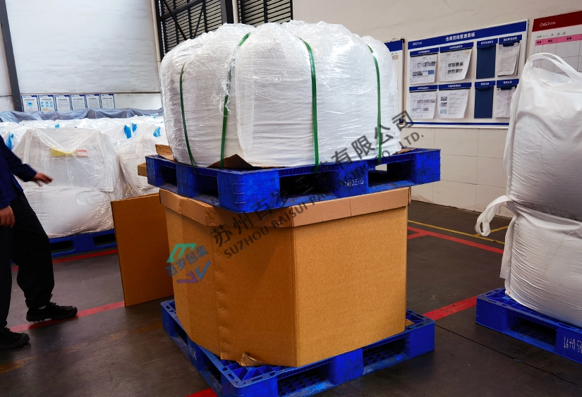 新能源汽車電池材料粉末重型紙箱,廣泛使用於電池粉運輸過程,電池粉材料由噸袋填裝後進行封口並用保護膜包好,當産品附加值比較高的時候我們重型紙箱的保護能力是比較好的!